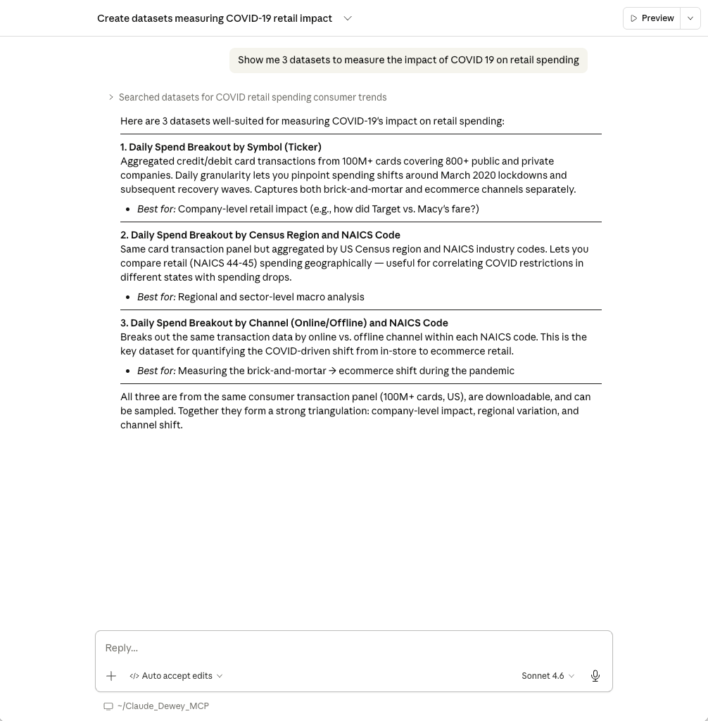 Putting the Dewey Data MCP to work